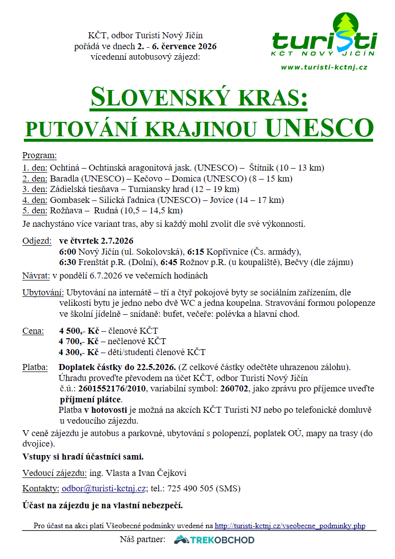 Upozorňujeme, že zájezd je plně obsazen. Případné zájemce zařadíme jako náhradníky.